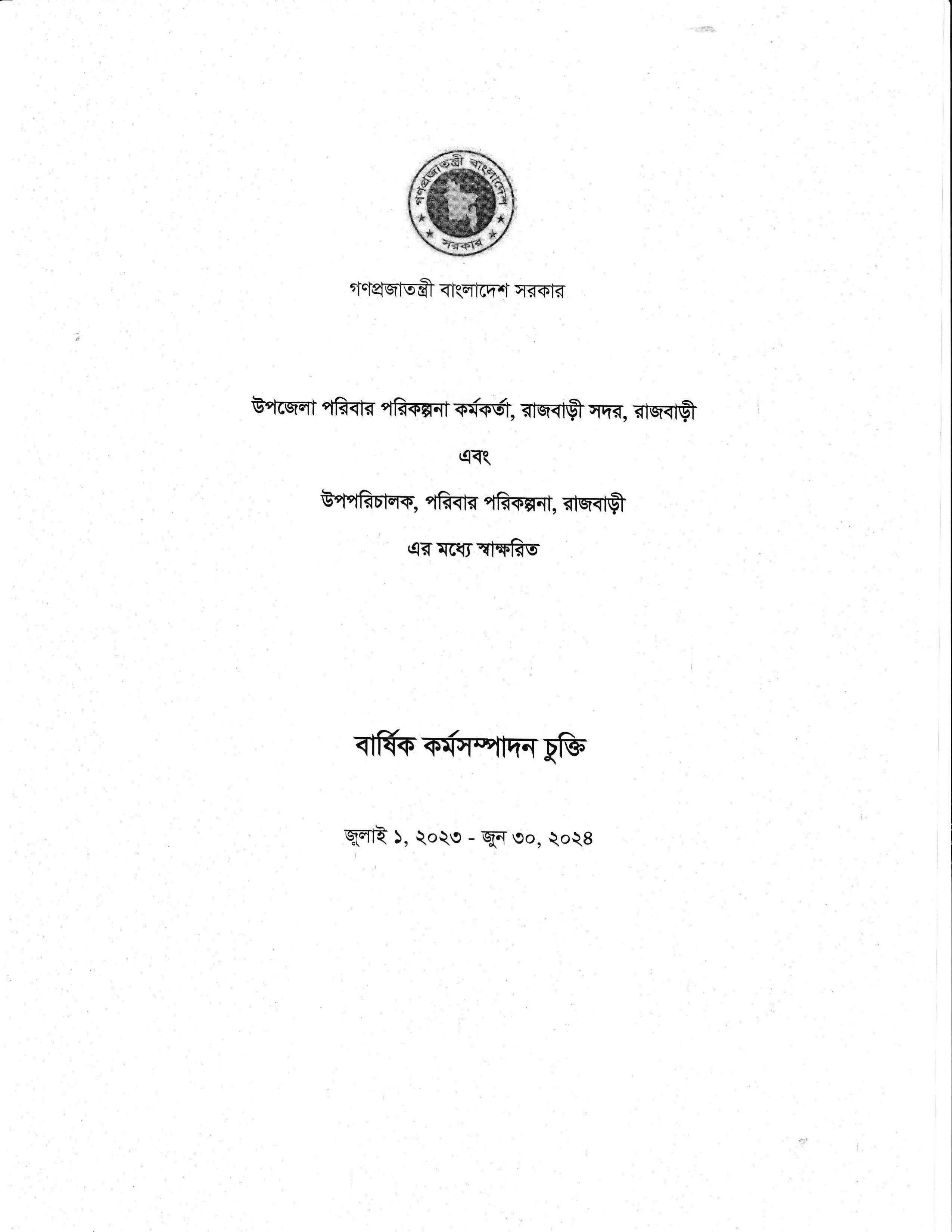 বার্ষিক কর্মসম্পাদন চুক্তি ২০২৩-২০২৪ খ্রিঃ